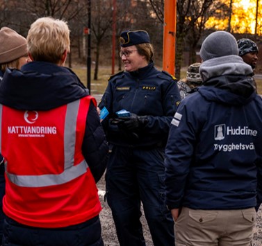 Som nattvandrare stöttar du inte bara kommunen i att bidra med ökad vuxennärvaro utan rapporterar in skadegörelse, klotter, otrygga sammankomster med mera och bidrar på så sätt även till att förebygga brott i Huddinge kommun.