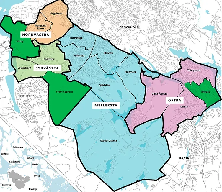 Huddinge kommun är belägen i södra delen av Stockholms län och är en av de största kommunerna i länet. Huddinge kommun erbjuder en mångsidig livsmiljö med både urbana och natursköna områden.